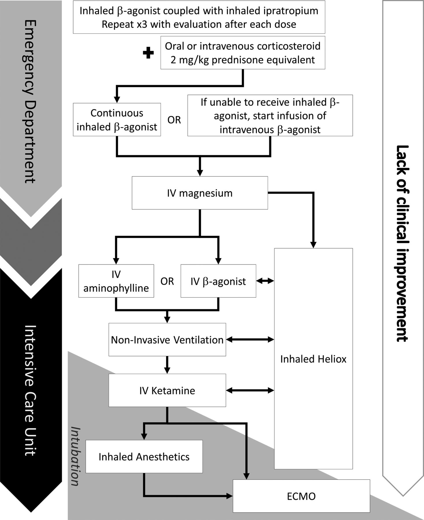 aminophyllineasthmaECMOhelioxketaminenon-invasive ventilationstatus asthmaticus